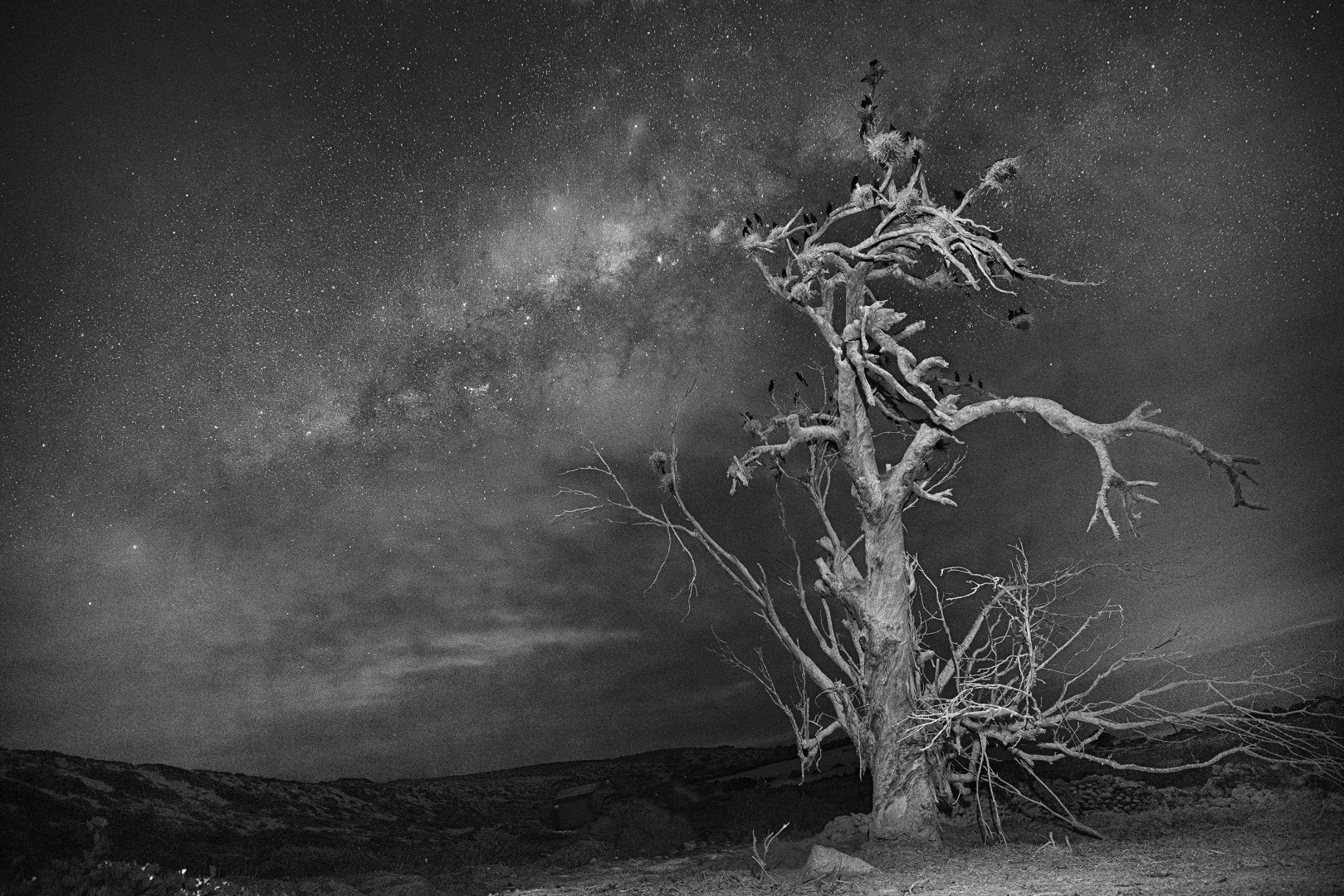 | IDFN 13.9 | Vía Láctea y cormoranesporOscar Fuentes Mardones20-10-2025 @ 10:14 horas En Caleta Los Bronces se encuentra este árbol seco donde anidan cormoranes, jotes y huairavos. Una foto con noche estrellada, sin baguada costera.. |