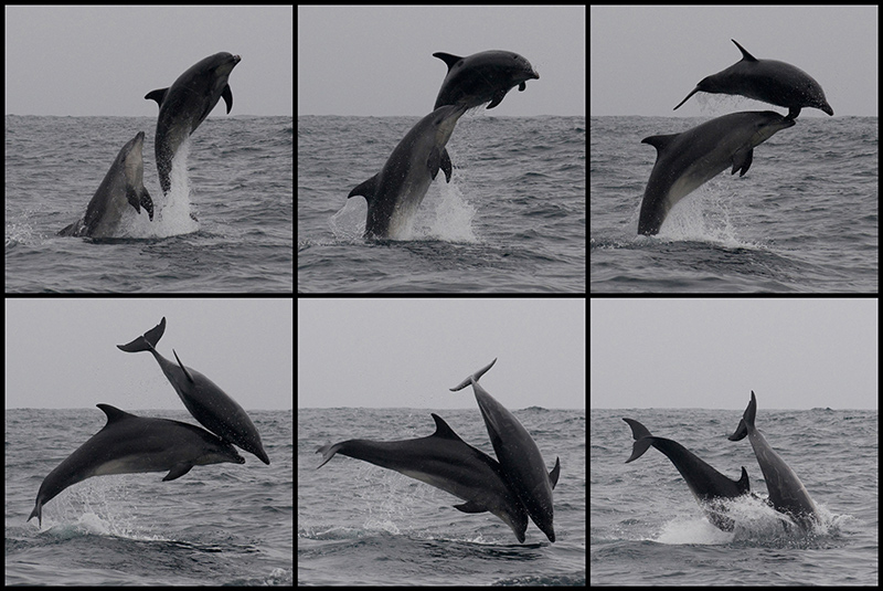 | Hermosa secuencia, Pta de Choros se cracteriza por sus días nublados. Los delfines son apasionantes, hermosos, un espectáculo, donde una foto no logra a veces mostrar lo que tu en tu secuencia nos brindas. Te felicito, buen logro y muy buena tu idea de mostrar la secuencia.Se podría Posterizar ... me gusto. Nota: 6.3 | |