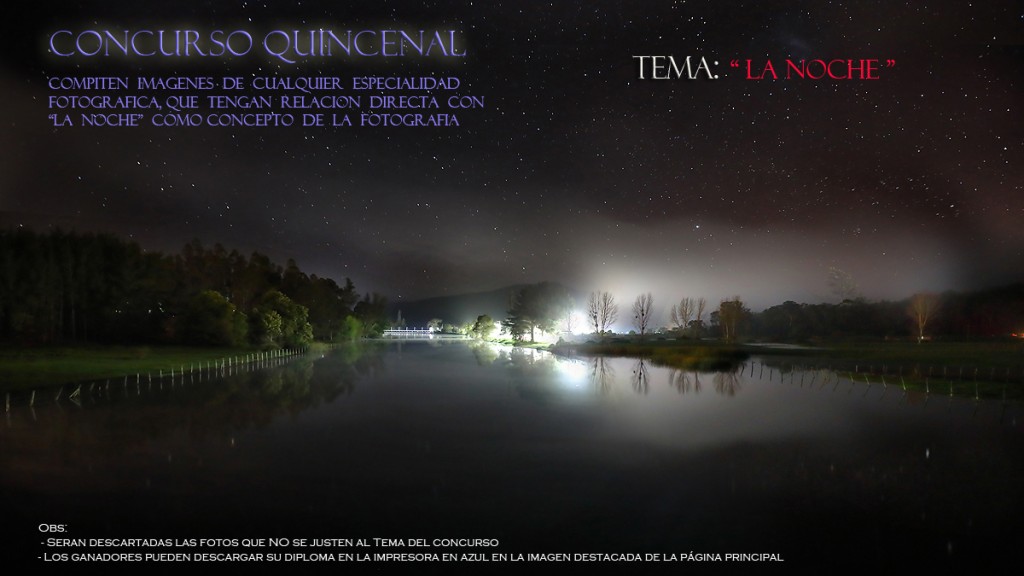 En este concurso compiten imágenes de cualquier especialidad fotográfica dentro del sitio, que tengan relación directa con la noche en cualquiera de sus formas imaginables.